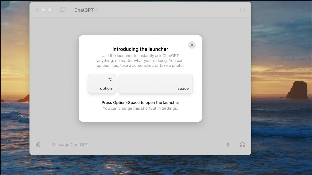Option+Spacebarkeyboard shortcut will open the ChatGPT launcher, where you can ask ChatGPT anything.