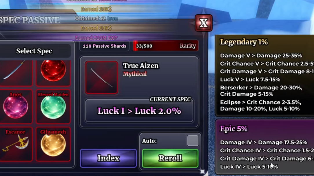 Passive Shard is a legendary material in Sailor Piece that allows you to unlock passive abilities for your weapons. The item drops from NPCs throughout the game, though its legendary rarity means the drop rate is low. Once you collect Passive Shards, you can exchange them with the Passive Master NPC on Judgment Island to enhance your weapon capabilities.