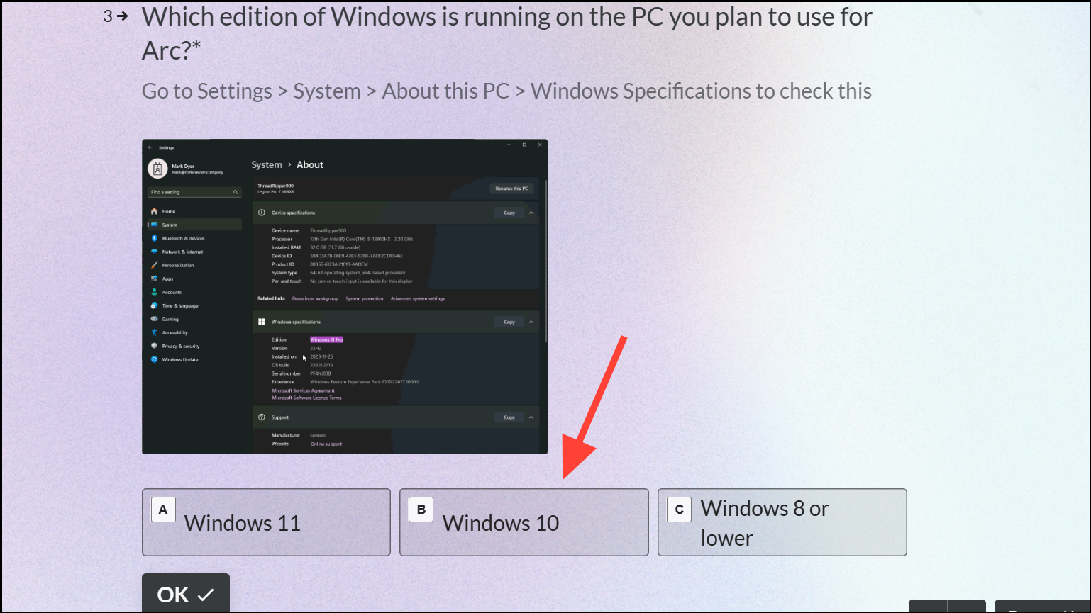 - Then, answer which edition of Windows you're using.
