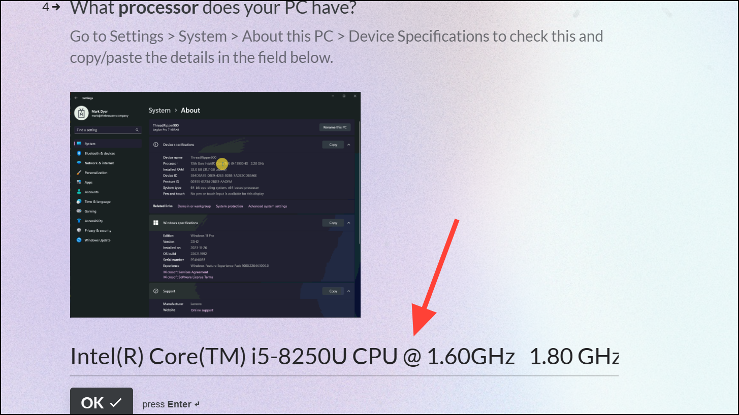 - Copy-paste or enter the information next to 'Processor' in the beta form.