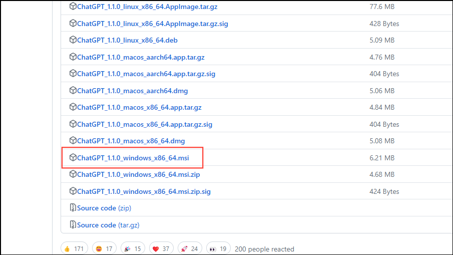 ChatGPT_1.1.0_windows_x86_64.msifile to download it.