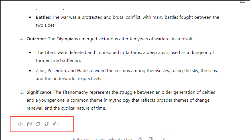 - All features of the ChatGPT website work with the desktop application, so you can access all previous conversation threads from the left, rename or delete previous chats, or regenerate responses. You can also change the AI model, like, copy, and export your chats in different formats, and even ask the chatbot to read its response aloud using the provided buttons.