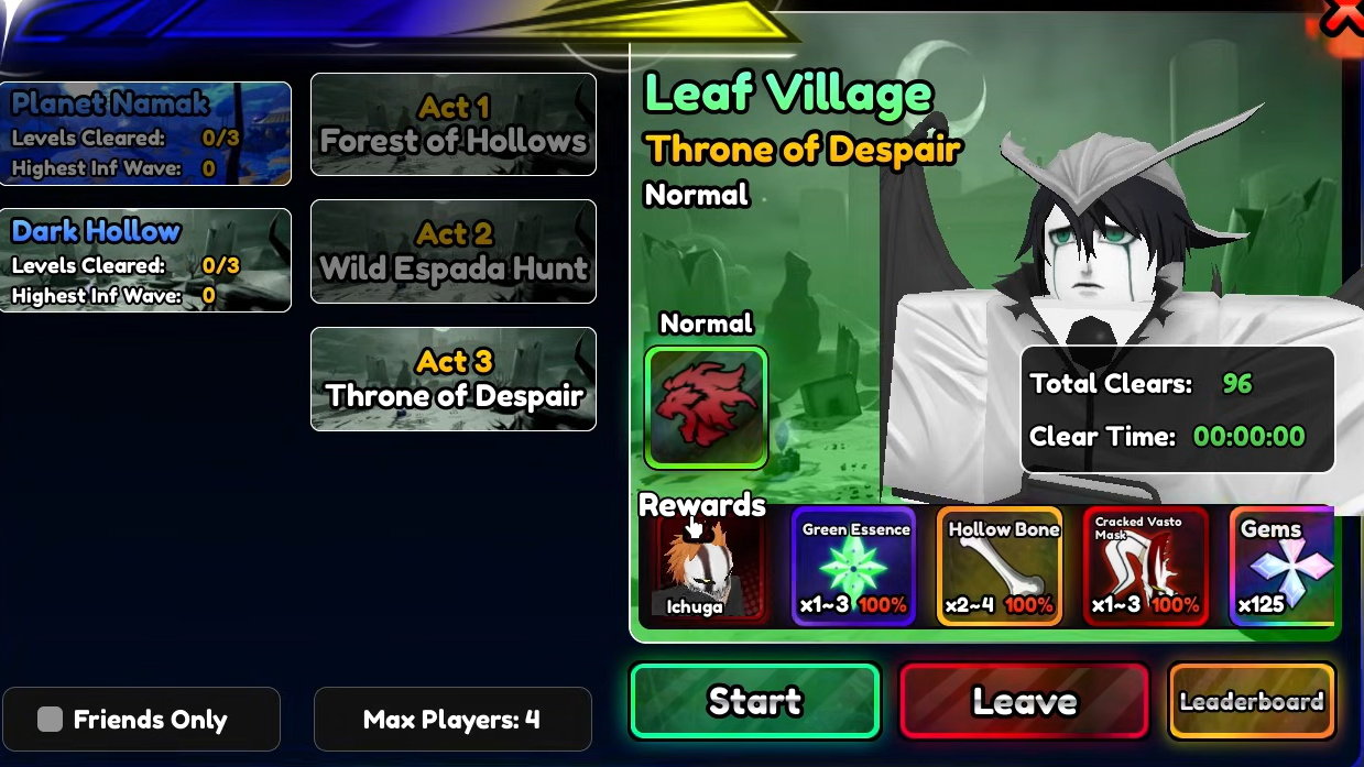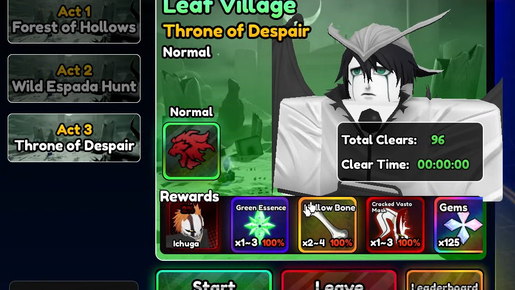 | Ulquiarro Lance | Ulquiarro | Craft: 7x Red, 20x Green, 9x Pink, 20x Cracked Vasto Mask, 6x Blue, 1x Rainbow Essence + 7,500 Gold |