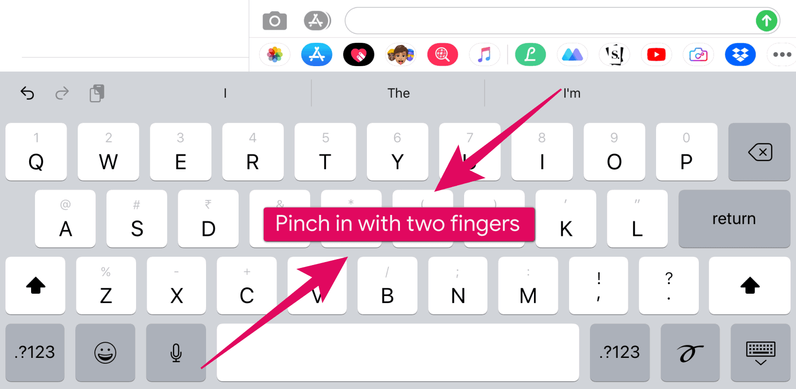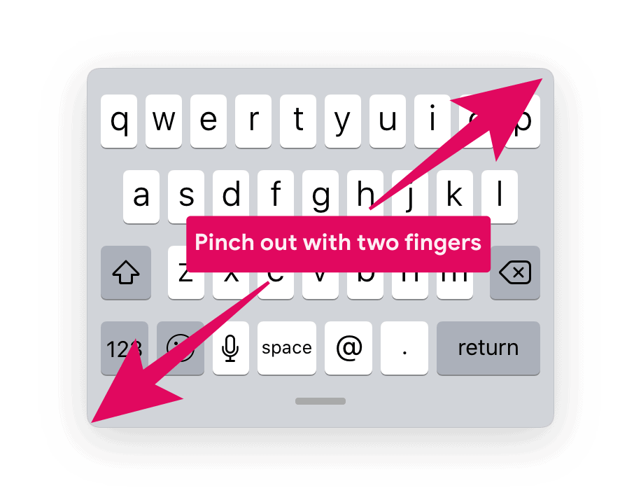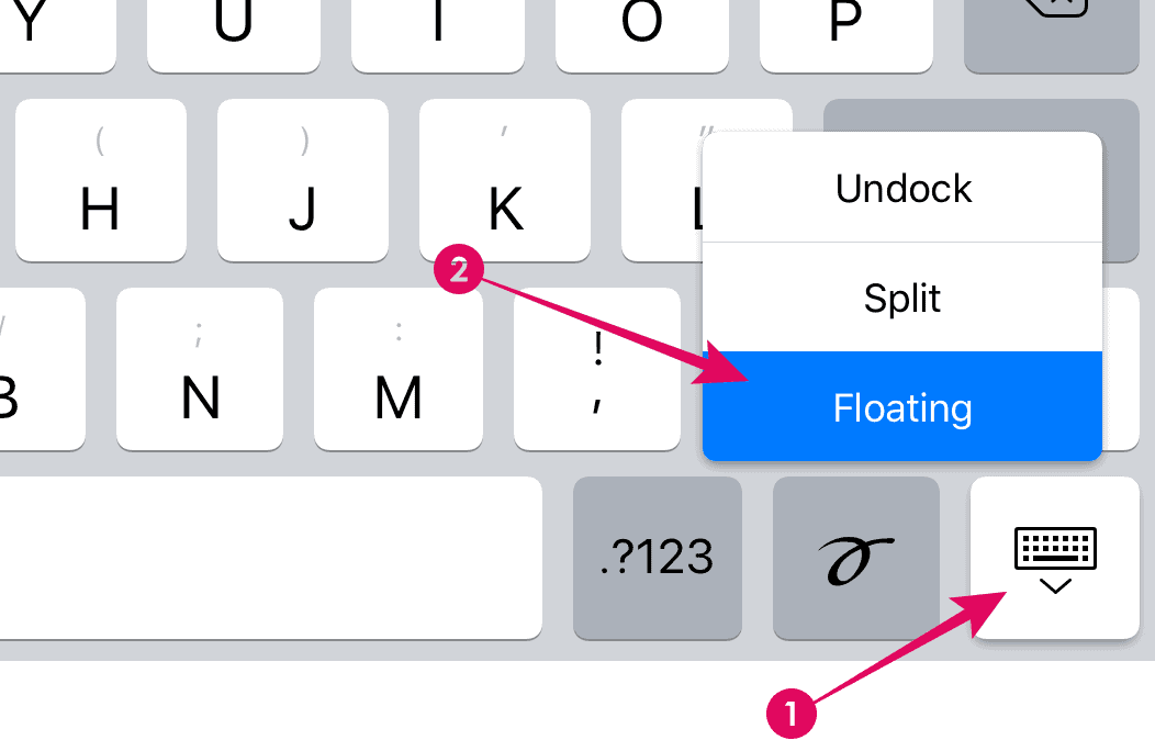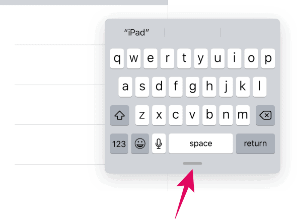 You can get the floating keyboard by simply pinching over the regular keyboard on your iPad. By pinching we mean an inward gesture on the keyboard using two fingers.