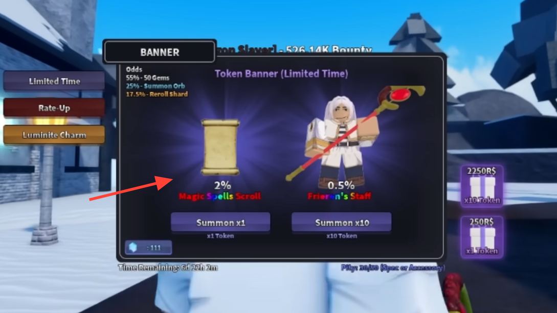 If grinding the boss isn't appealing, the Staff also appears as a Mythical weapon on the limited-time Banner. Rolling on the Banner costs spins (obtainable with Robux), so this route trades in-game time for premium currency. Whether you farm or roll, the weapon is identical once obtained.