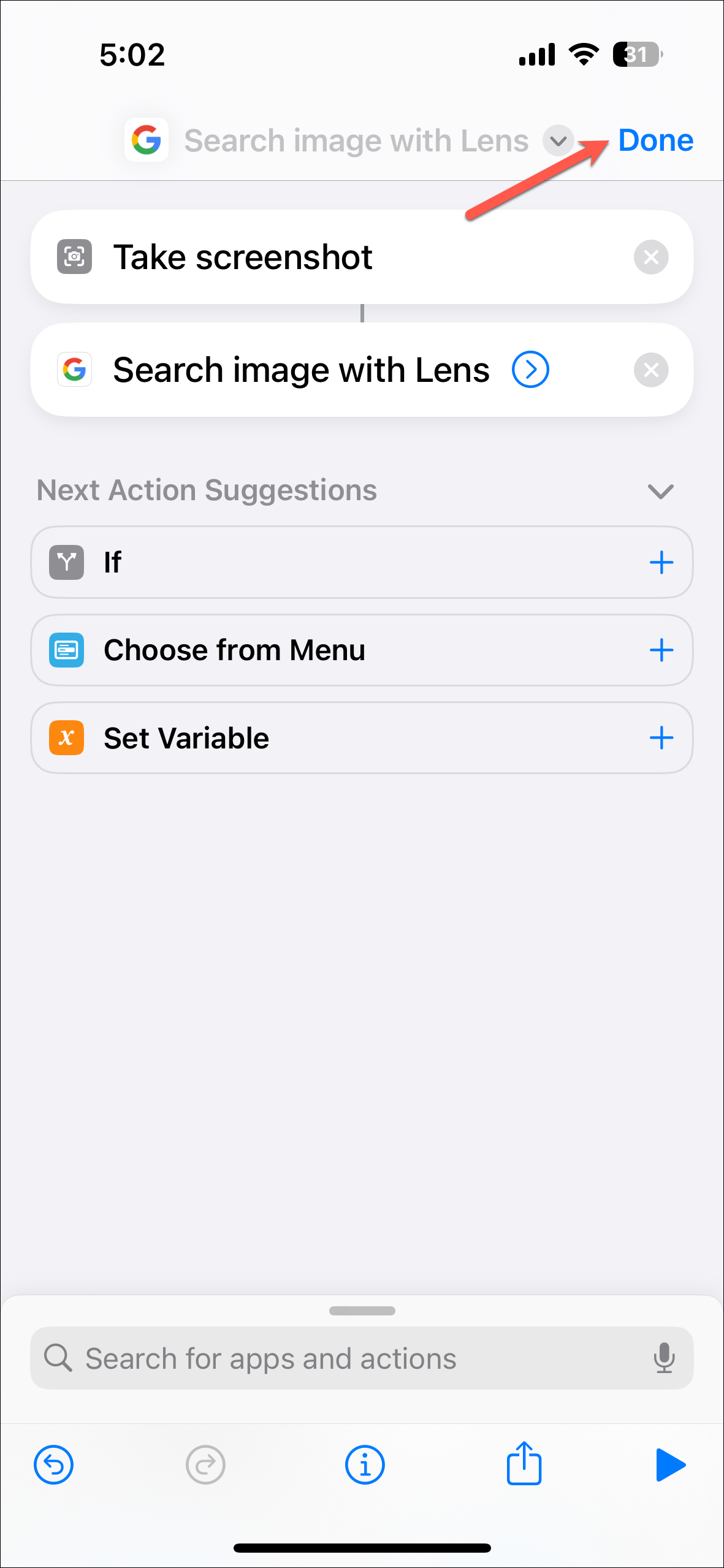 And you're set. Next time there's something on your screen you want to search for, simply use your Action Button or double/ triple tap the back of your screen and it will trigger the shortcut. The shortcut will automatically take a screenshot and open it in Google Lens to search for the contents of the screen.
