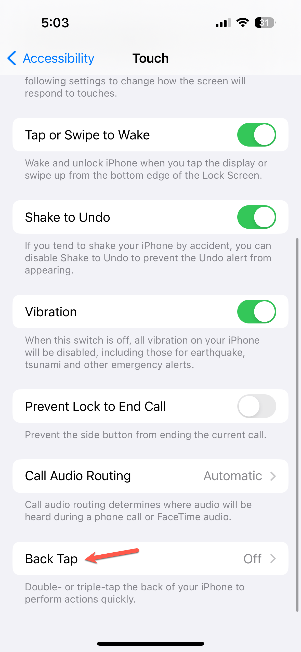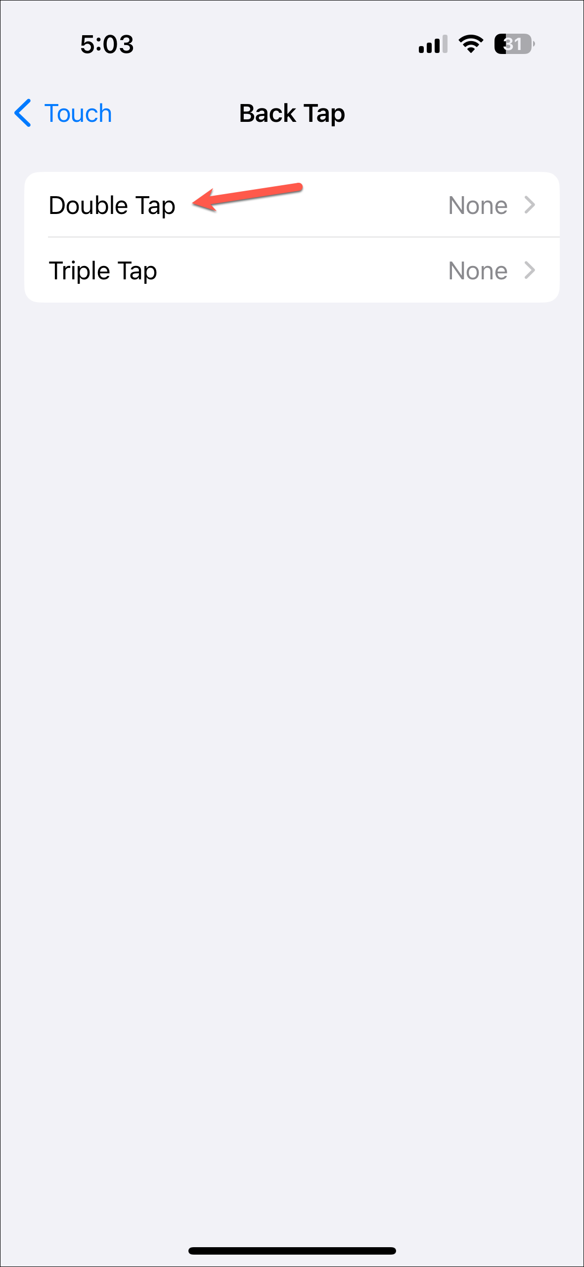 - Select 'Double Tap' or 'Triple Tap', depending on which back tap action you want to use.
