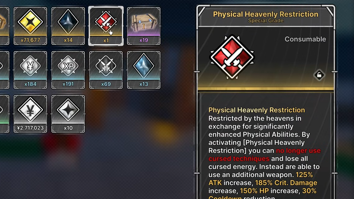 The key to obtaining this item lies with an NPC named the Physical Heavenly Restrictor. This character manages the progression for players who have opted out of Cursed Energy in favor of raw physical prowess. Once you meet the level criteria, locate this NPC to initiate the dialogue for the next stage of your development.