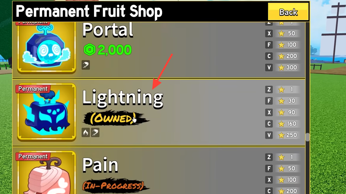 Eating a Lightning Fruit skin from the Summer Gacha counts as eating a physical fruit for the fourth upgrade research requirement. The green Lightning skin specifically completes this requirement while also changing the fruit's visual effects.