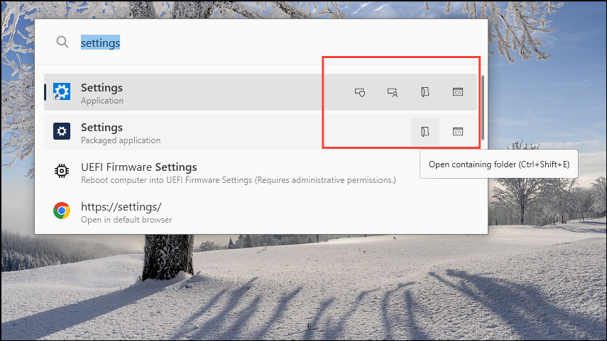 The folder icon opens the folder containing the file, showing the location of the app or file in File Explorer. Lastly, there will be aC:\Box, which can open a path to the document or file in a command prompt.