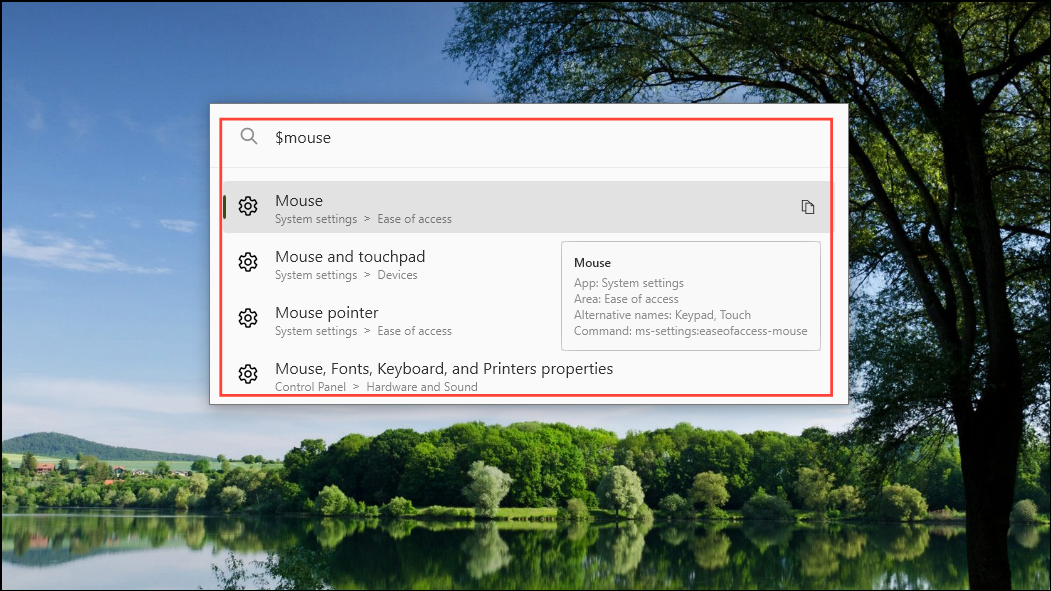$symbol before typing in the name of the setting you want to search for, such asmouse.