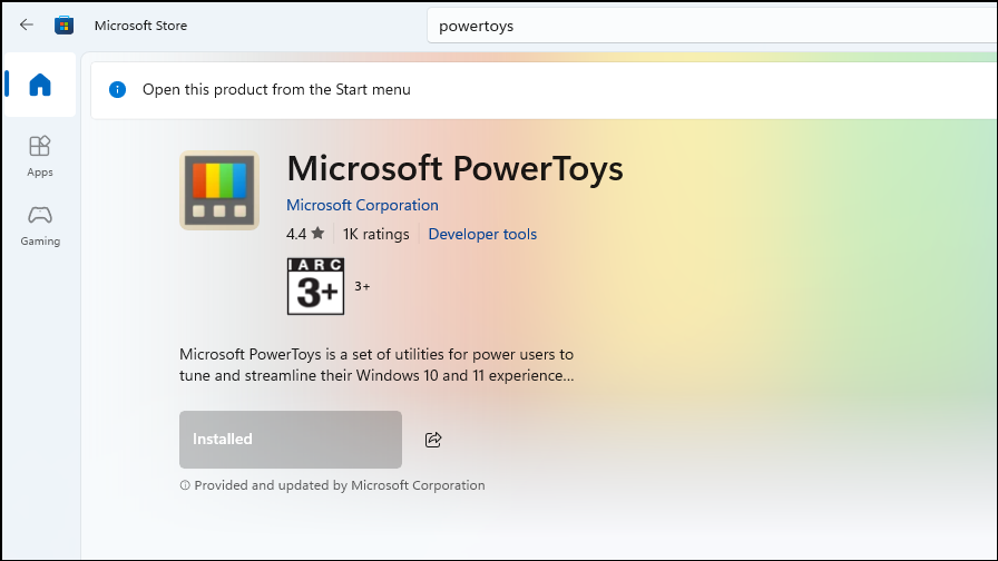 - Search for and install the Microsoft PowerToys application from the Microsoft Store.