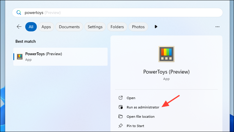 - Once PowerToys is installed, launch it from the Start menu with admin privileges.