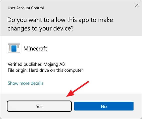 - If prompted by User Account Control, click Yes to allow the installation.