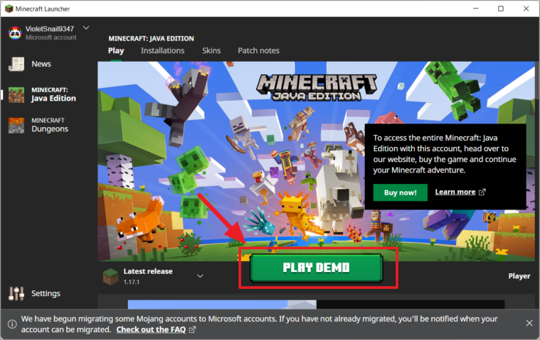 - Once the download is complete, you can start playing the demo version of Minecraft Java Edition.