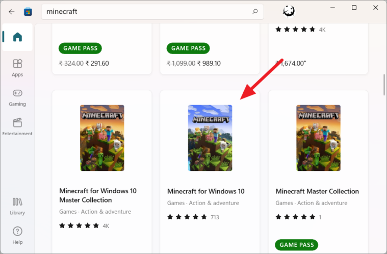 - In the Microsoft Store, search for Minecraft in the search bar.