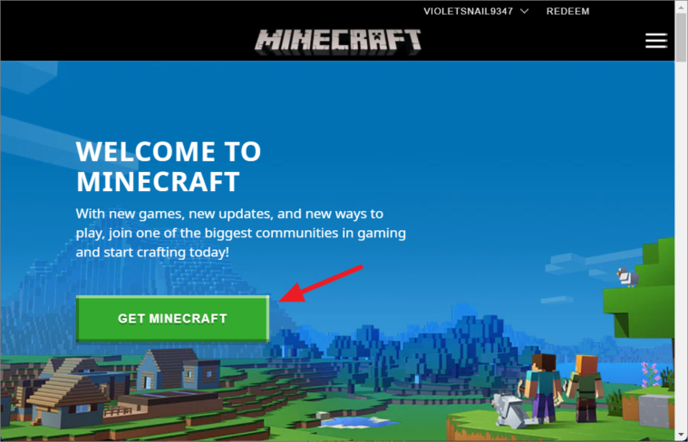 - Click on the GET MINECRAFT button on the homepage.
