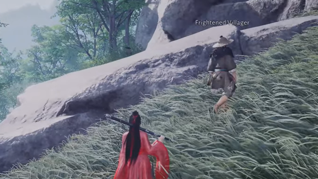 Step 1: Travel to the Path of Karma fast travel point in Jadebrook Mountain. Near this Landmark, speak to the NPC labelled Frightened Farmer. After the conversation, let him walk away up the nearby path.