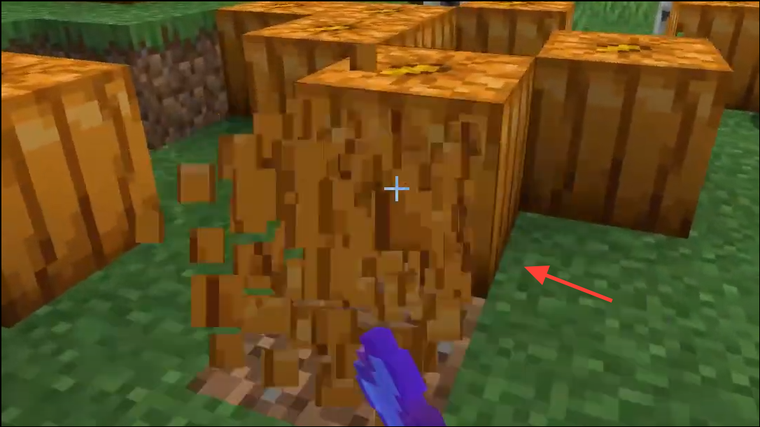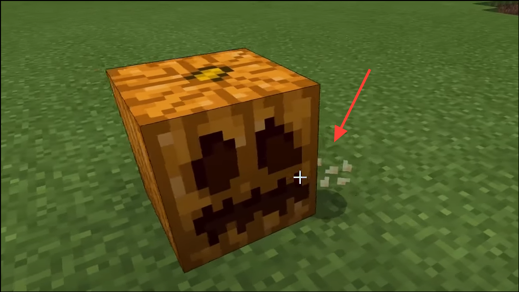 Step 2: Use shears on the pumpkin to carve it. Pick up the dropped seeds immediately so they don’t despawn.