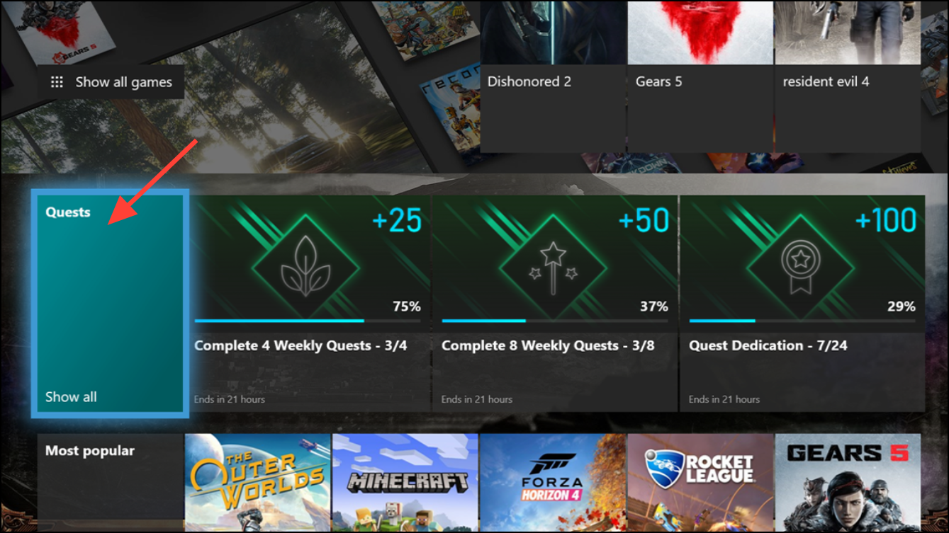 Step 1: Open the Rewards hub, accessible from your Xbox console profile, Xbox app on Windows PC, or the Xbox mobile app. This is where you can browse the current Quests available for completion. Quests range from daily tasks like playing any Game Pass title for a set period, to weekly and monthly streaks that require more consistent engagement.