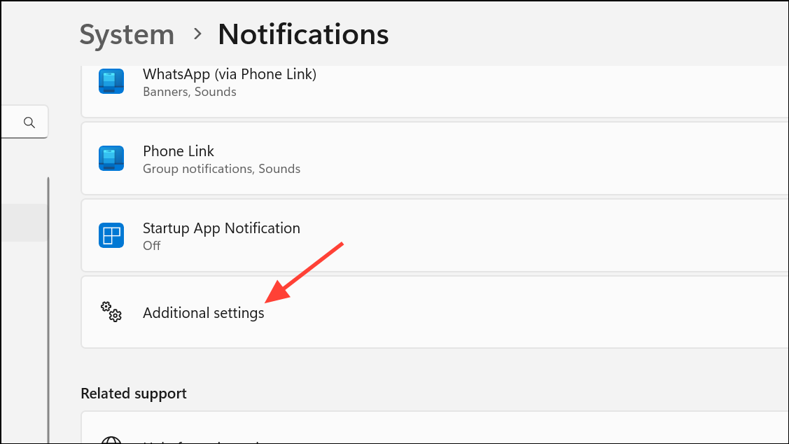 Step 3: Scroll to the bottom of the Notifications settings page and click on Additional settings. You will see several options related to Windows tips and suggestions.