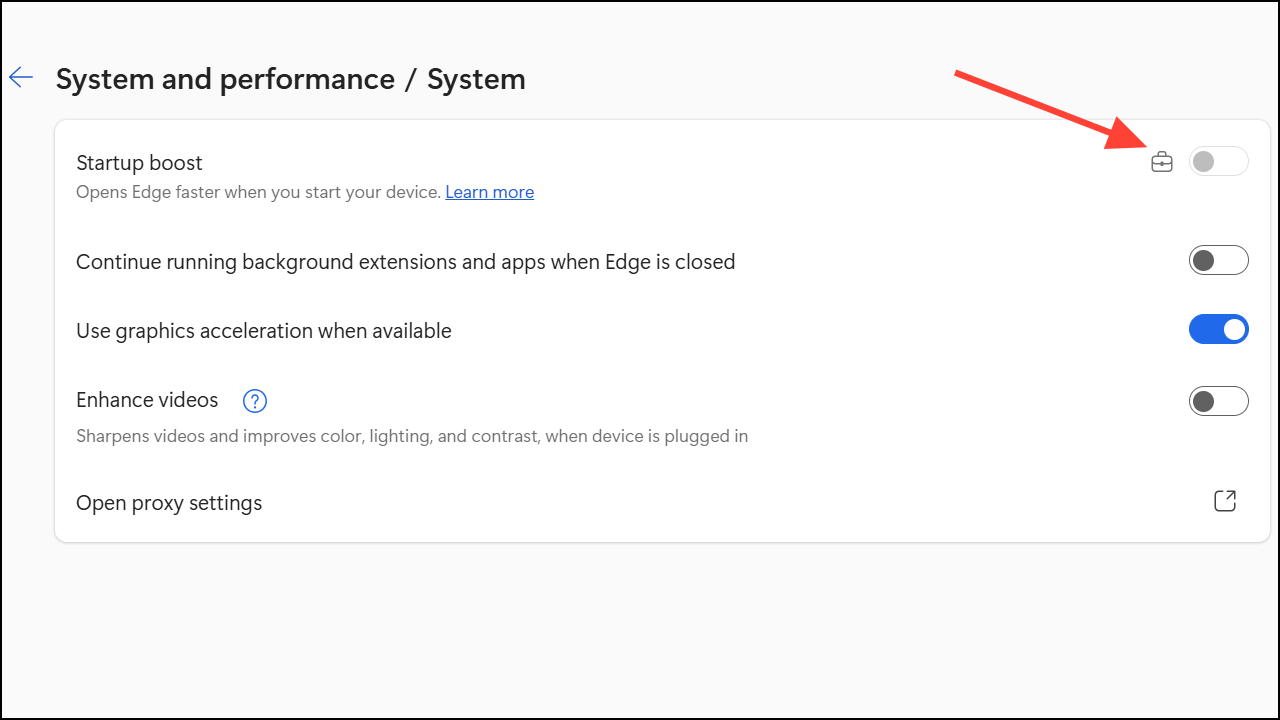 Step 2: Go to System and performance. Look for any toggles related to startup boosts, background extensions, or feature recommendations, and disable them if present.