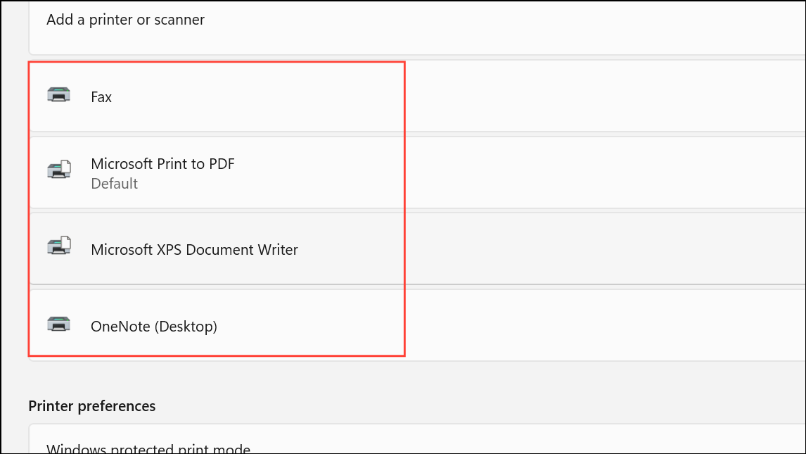 Step 1: Open Devices and Printers in the Control Panel. Review the list for virtual printers like "Microsoft Print to PDF," "Microsoft XPS Document Writer," or any software-based printers you do not use.