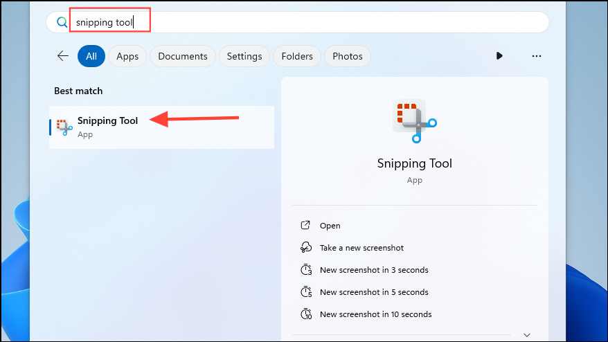 snipping tool, and click on the application when it appears to open it.