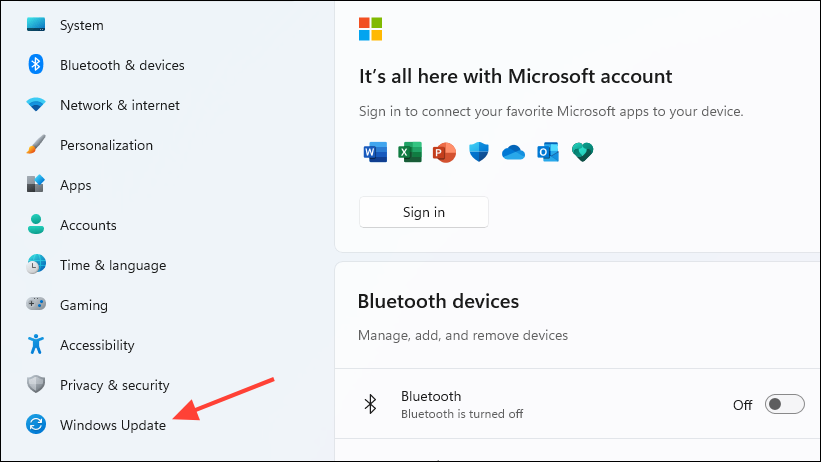 Win + Ishortcut and then click on 'Windows Update'.