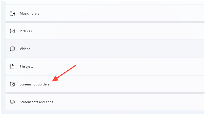 - Next, scroll down and click on 'Screenshot borders'.