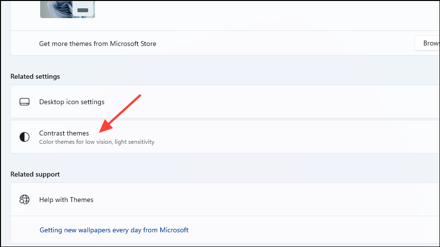 - Next, click on 'Contrast themes'.