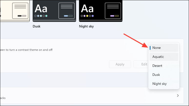 - When the Contrast themes page opens, click on the dropdown menu on the right and select 'None'.