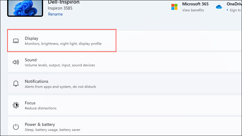 - Then click on 'Display' to view all display-related settings.