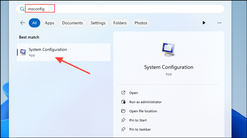 msconfigand open the System Configuration utility.