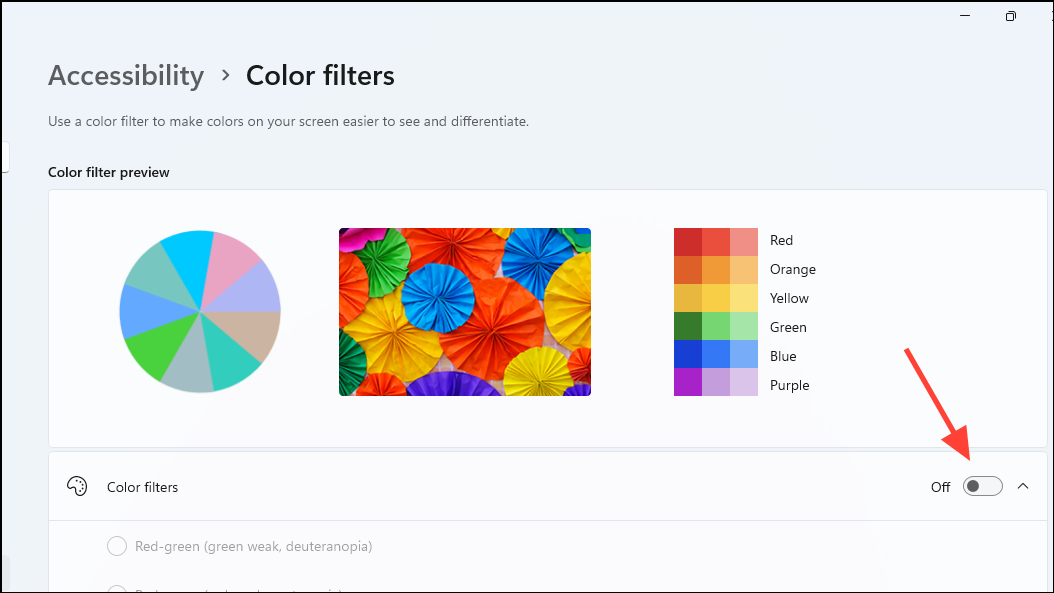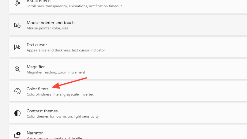 - Then go back to the Accessibility page and click on 'Color filters'.