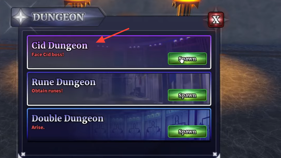Step 2: Talk to the Dungeon Master and select the Cid Dungeon option. Enter the purple portal that spawns to begin the dungeon instance.