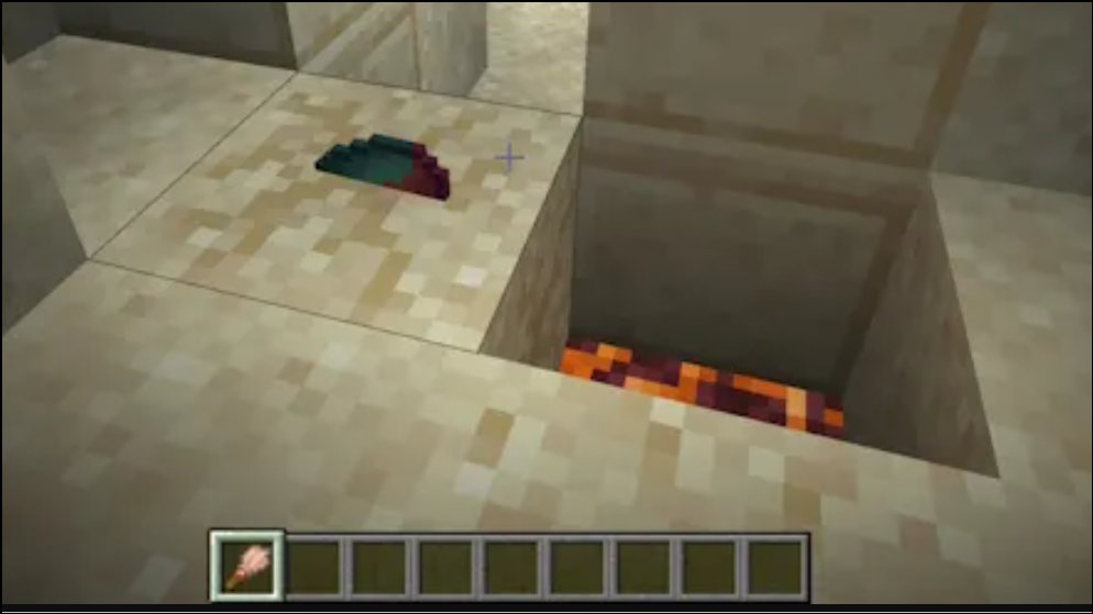 Step 5: Search the base and perimeter of the sandstone ruins for suspicious sand blocks. These have a subtly disturbed, “cracked” texture compared to normal sand.