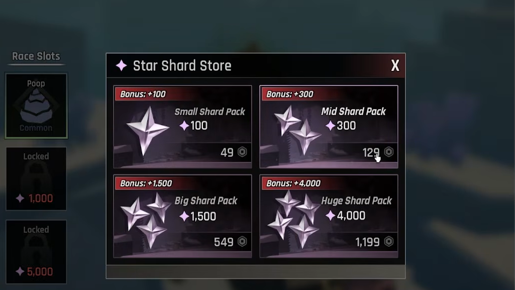 You can also use Star Shards to unlock additional race slots. By default, you have one race slot. Unlocking the second slot costs 1,000 Star Shards, and unlocking the third slot costs 5,000 Star Shards.