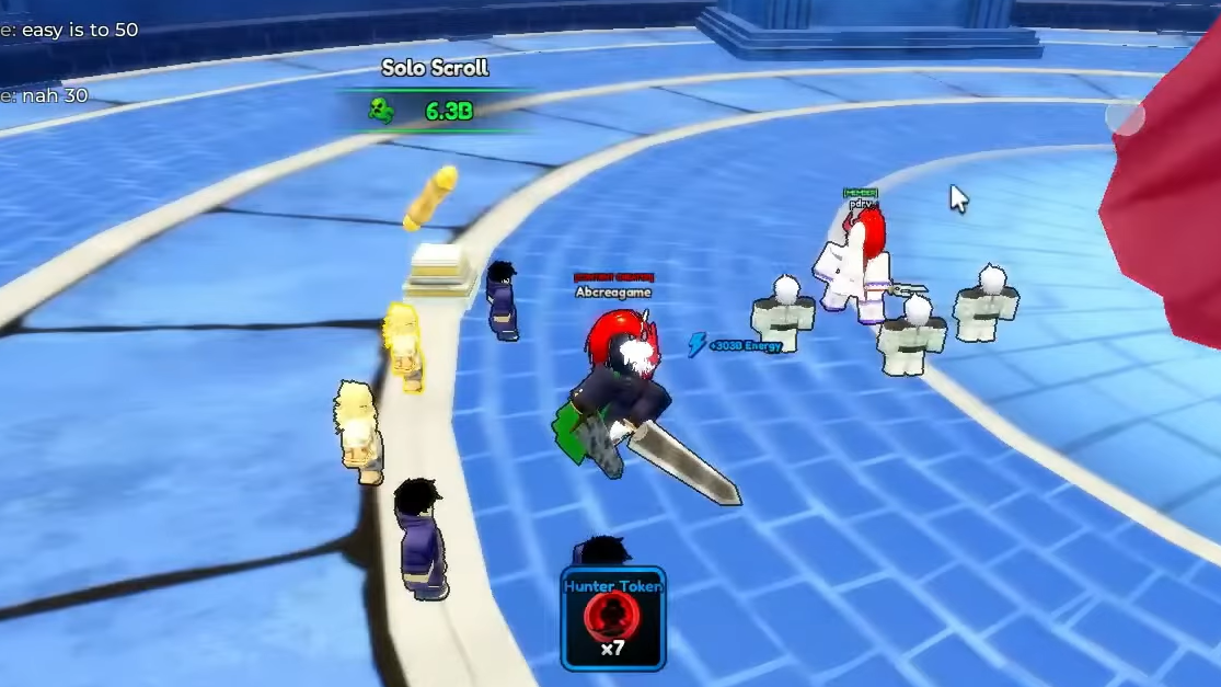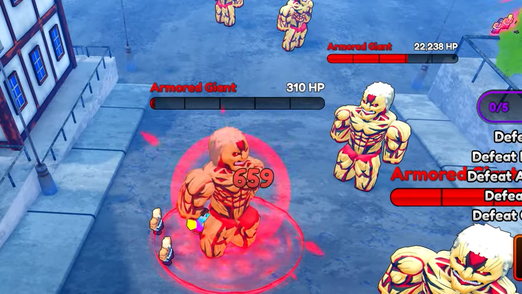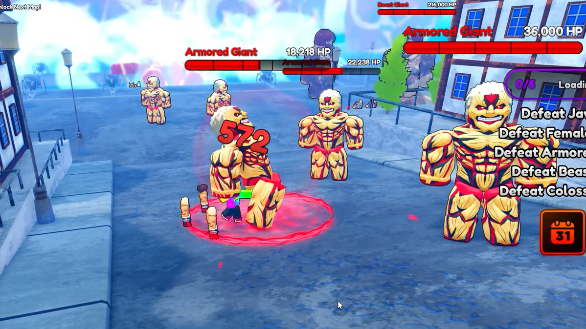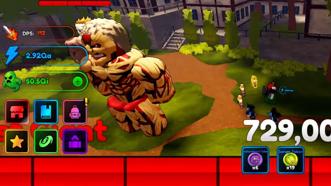 Redeem the RELEASE code, pop your potions, and follow the quest line in World 1. Kill Jaw Titans, Female Titans, and the rest of the required enemies. Once you reach the Colossal Giant boss at the end of the world, park yourself there and simultaneously auto-summon at the nearby Scroll Statue while your character fights the boss. This lets you farm Ghosts, earn tokens, gain Energy, and roll for heroes all at the same time.
