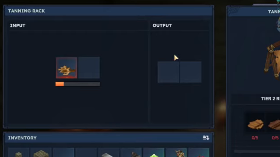 Step 2: Put Storm Hide into the Tanning Rack’s input slot. Storm Hide is the required raw material for the conversion.