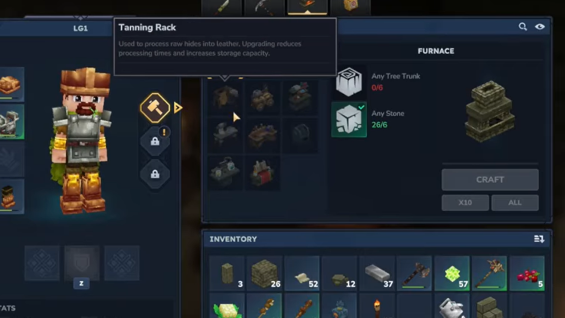 If you don’t already have a Tanning Rack placed, you can craft one using basic materials plus Light Hide. This is the same station used for turning other hides into leather as well.
