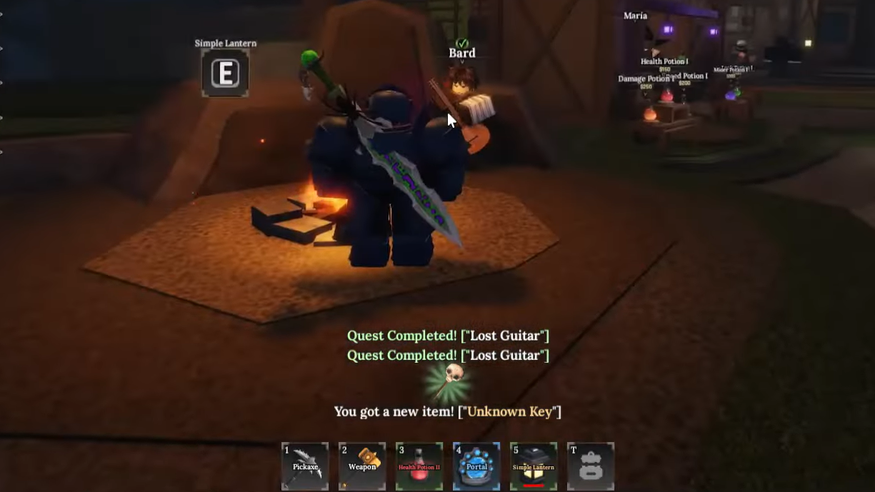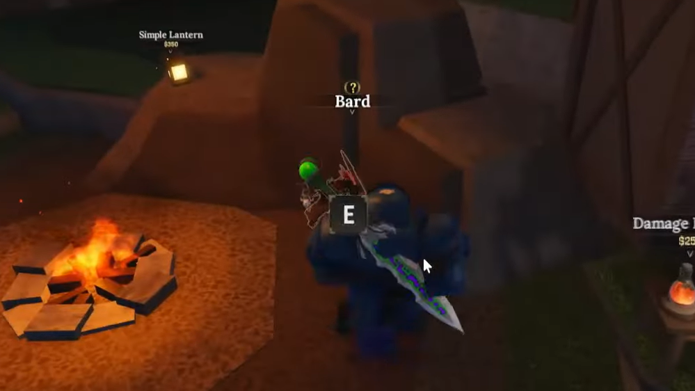 Step 1: Go to the first island (World 1) spawn area and find the Bard NPC sitting near his campfire close to Sensei Moro. Talk to him and accept his quest to recover his missing guitar.