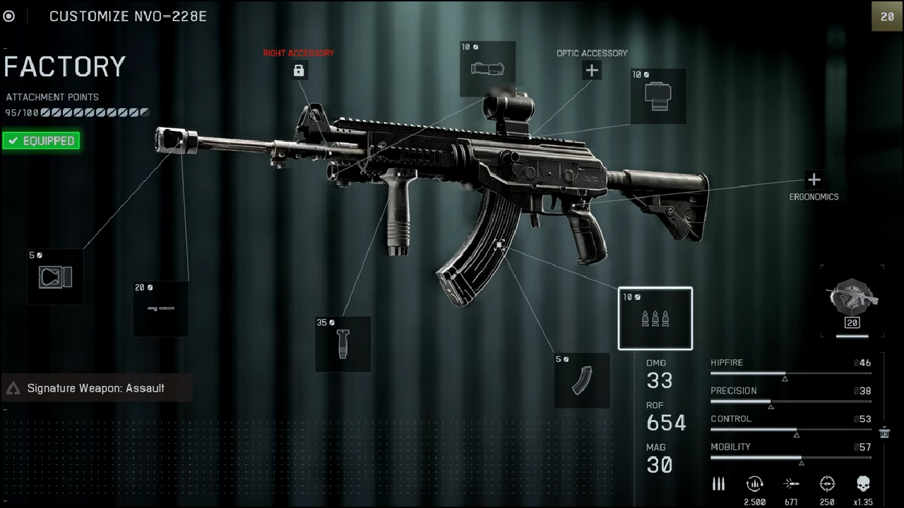 Step 2: Adjust attachments for your playstyle and map selection. If you prefer fast-paced, close-quarters combat, choose attachments that maximize rate of fire and handling speed. For larger maps or longer sightlines, prioritize optics with higher magnification and barrels that improve bullet velocity and range. The NVO-228E, for example, excels with the Double-Port Brake, 409MM Fluted barrel, Classic Vertical grip, 30RND Magazine, Polymer Case ammunition, a 5 MW Red top accessory, and a CCO 2.00x scope, making it highly effective for both aggressive pushes and controlled engagements.