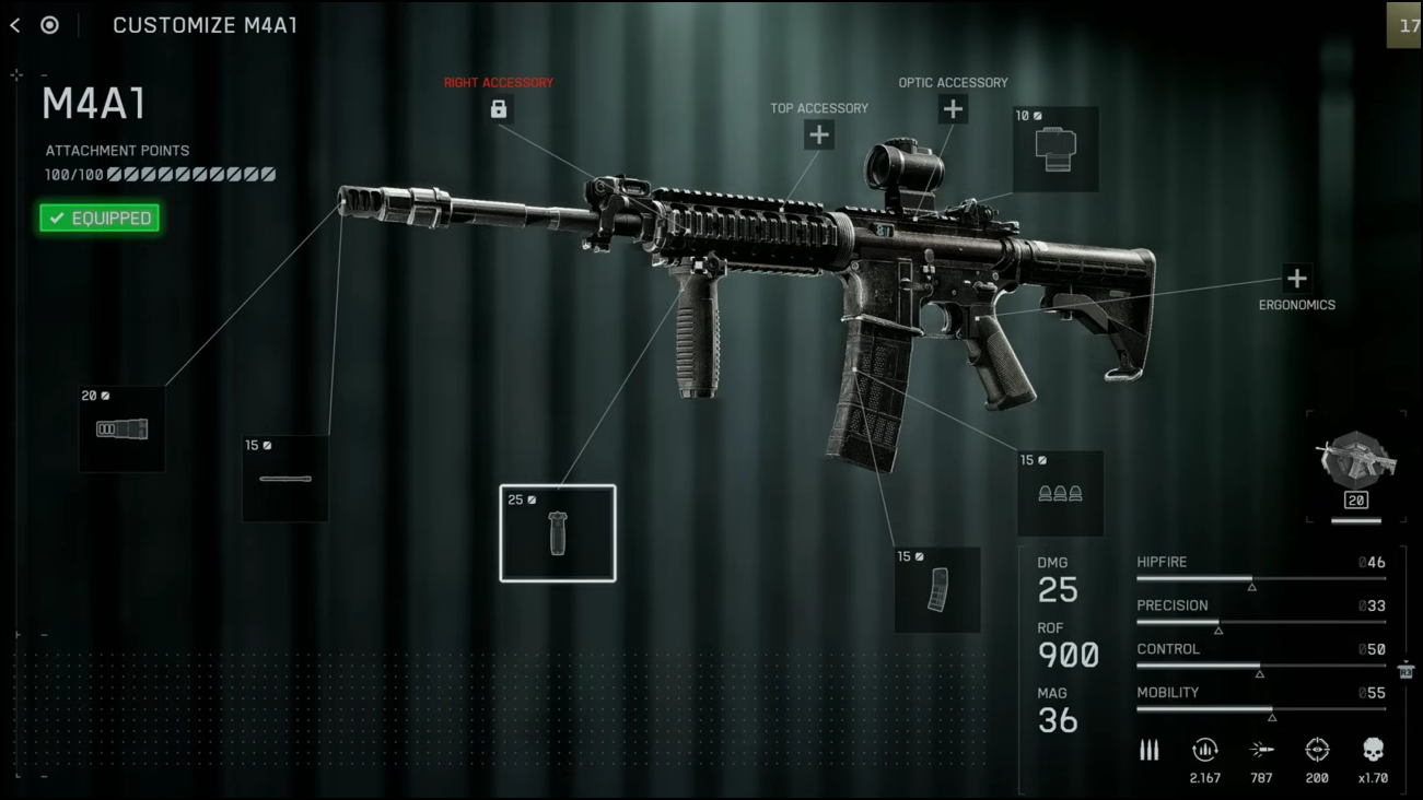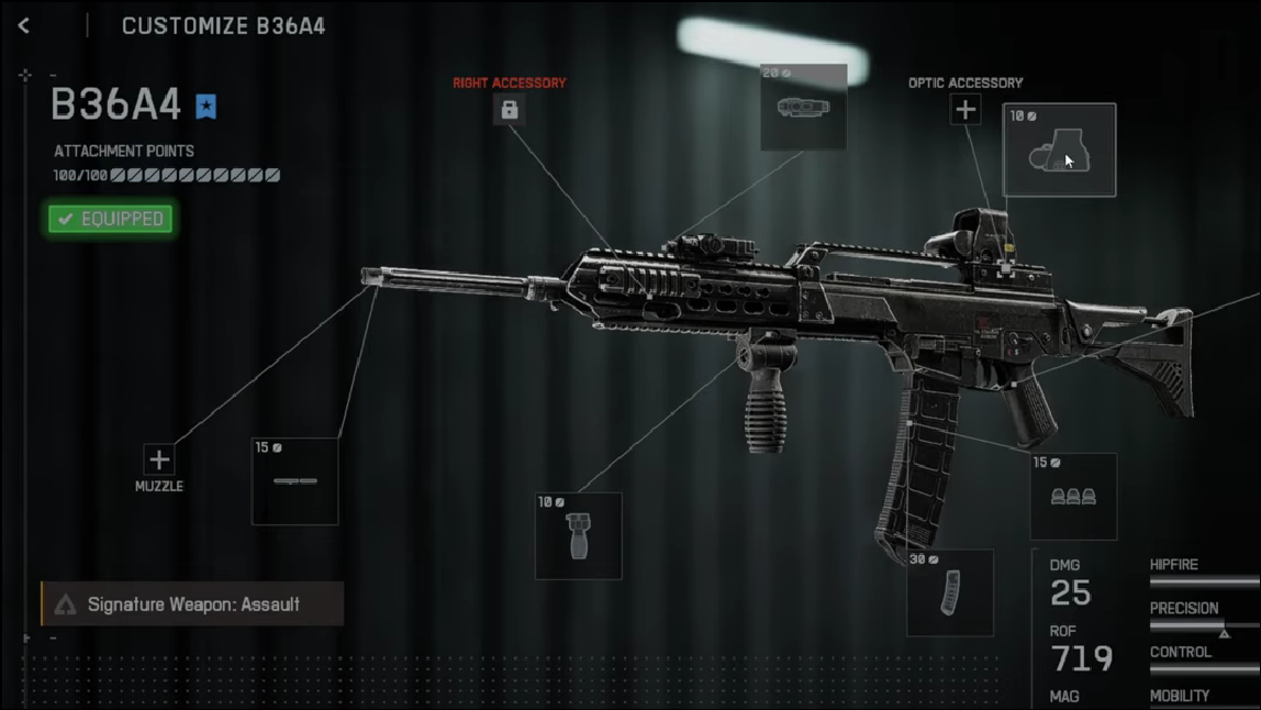 Step 1: Equip the best attachments for your chosen assault rifle. Attachments in Battlefield 6 are selected based on a points system, where each attachment has a value and you have a total of 100 points to allocate. Prioritize attachments that improve recoil control, accuracy, and reload speed. For example, the M433 performs best with a Compensated Brake (muzzle), 16.5" Fluted barrel, 6H64 Vertical underbarrel grip, 30RND Fast Magazine, Polymer Case ammunition, and a RO-M 1.50x scope. This configuration stabilizes horizontal recoil and boosts your ability to win close- to mid-range firefights.
