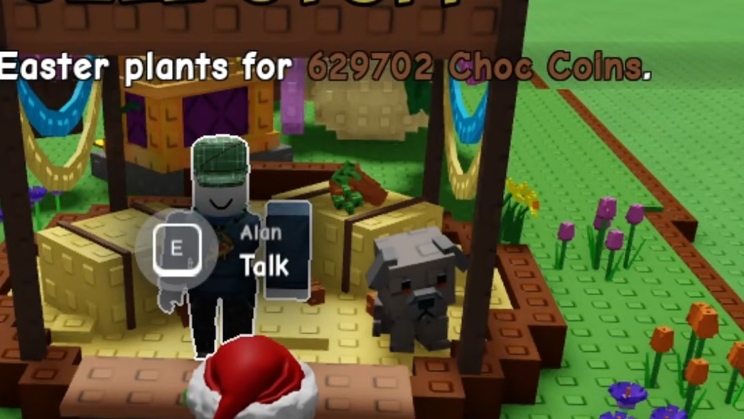 Choc Coins are the primary event currency. You earn them by selling Easter crops at the Easter Sell Stand on the right side of the center island. The Event Shop NPC sits on the left side of the same island and stocks seeds, pets, and gear purchasable with Choc Coins, Robux, or Trade Tokens.