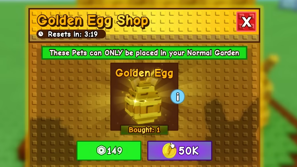 Step 2: Purchase Golden Eggs from the Golden Egg Shop on the left sub-island. The base price is 25,000 Choc Coins per egg, but the cost doubles with every purchase. For your first Candy Blossom seed, you need 50 eggs — meaning the total Choc Coin investment escalates quickly. Build a productive Easter garden before you start buying eggs in bulk.