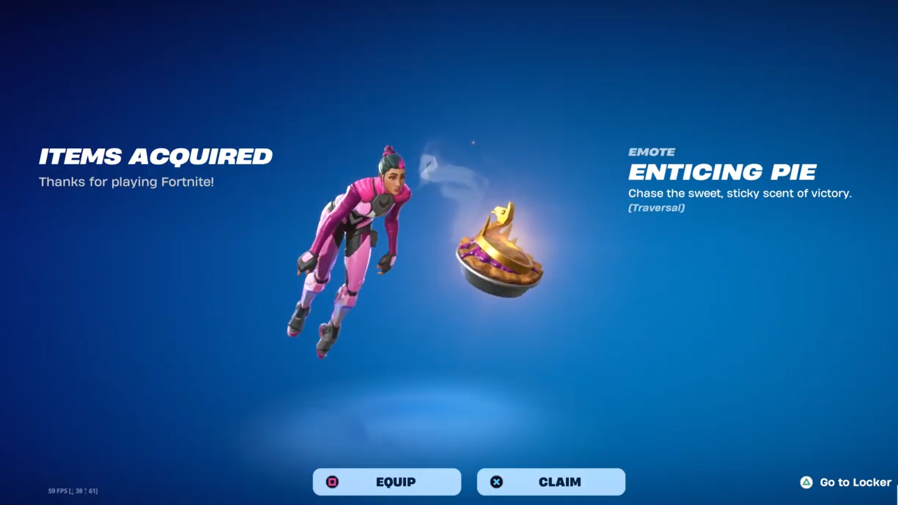 Step 2: Open your Locker and navigate to the Emotes tab. Search for "Enticing Pie" to verify it has been added to your collection.