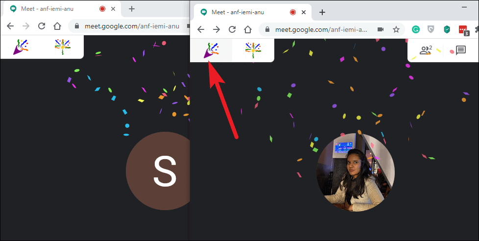 Note: Only the participants who have the Google Meet Party Button extension installed will be able to see the party popper effect on their screen.