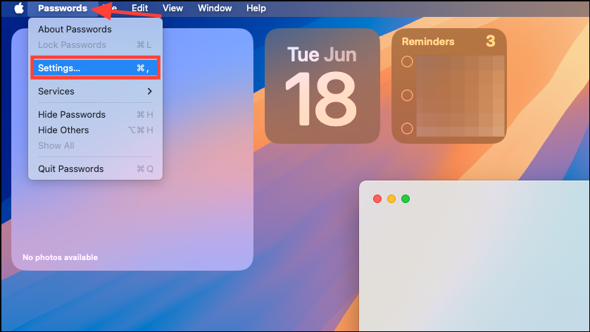 Step 2: Click on Passwords from the menu bar and select Settings.