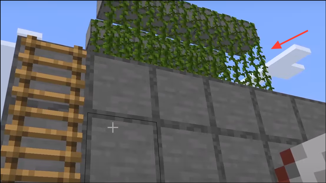 Step 1: Build a 10–20 block tall wall from any full solid block (stone, cobble, etc.). Leave clear space below so hanging vines can grow downward.